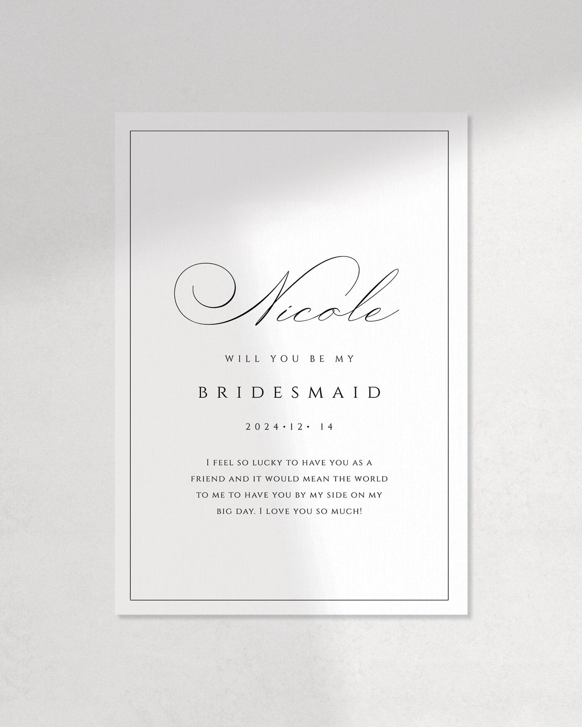 Unveiling our exclusive Lile bridesmaid proposal template - the epitome of sophistication for posing the question to your bride tribe with a dash of charm. Elevate your bridesmaid proposal box with this essential, modern, and minimalist bridesmaid proposal card.