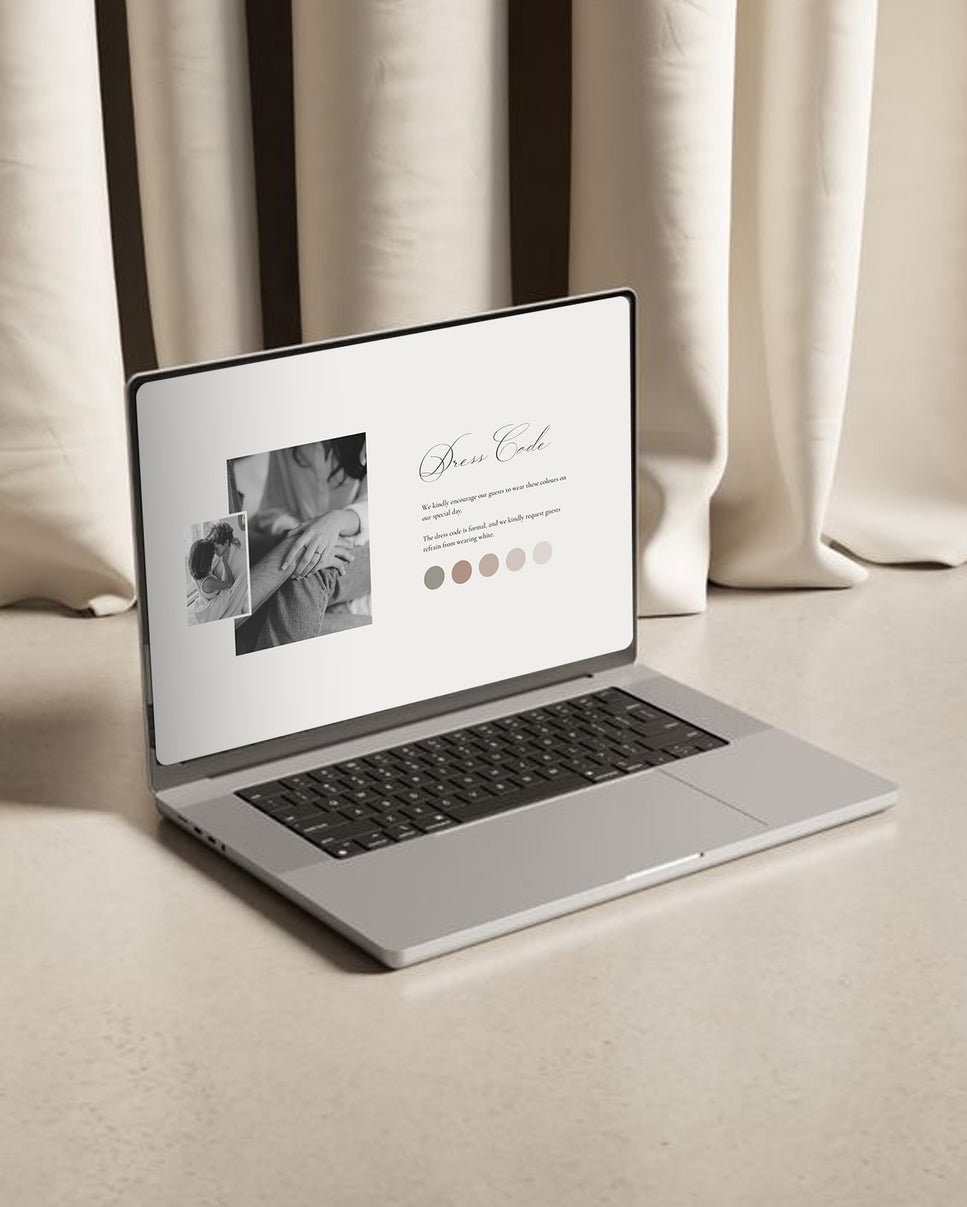 Using your laptop, personalise your website in Canva, a free and easy-to-use platform. Publish your website design, and send the link to your guests.