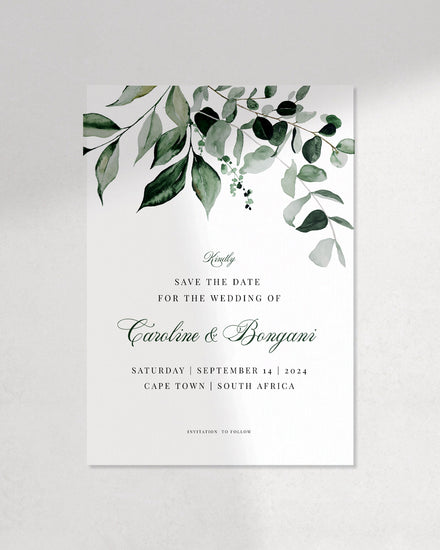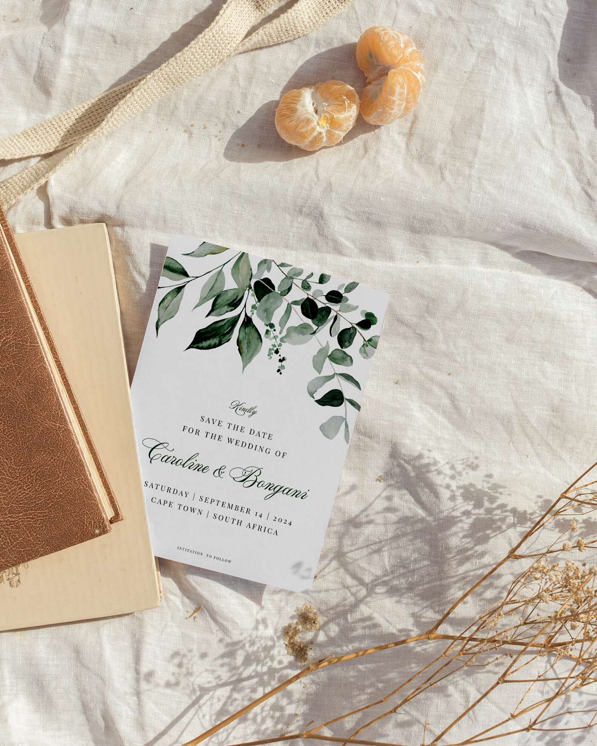 The Evergreen Save The Date Wedding Template embraces a botanical design and classic typography. Combining and adapting minimalist typography and monograms, it's inspired by the modern-day bride.