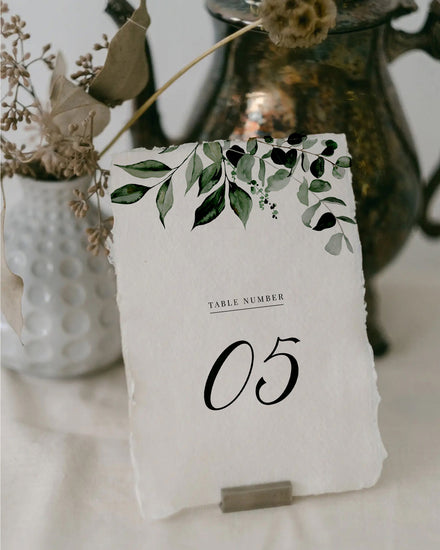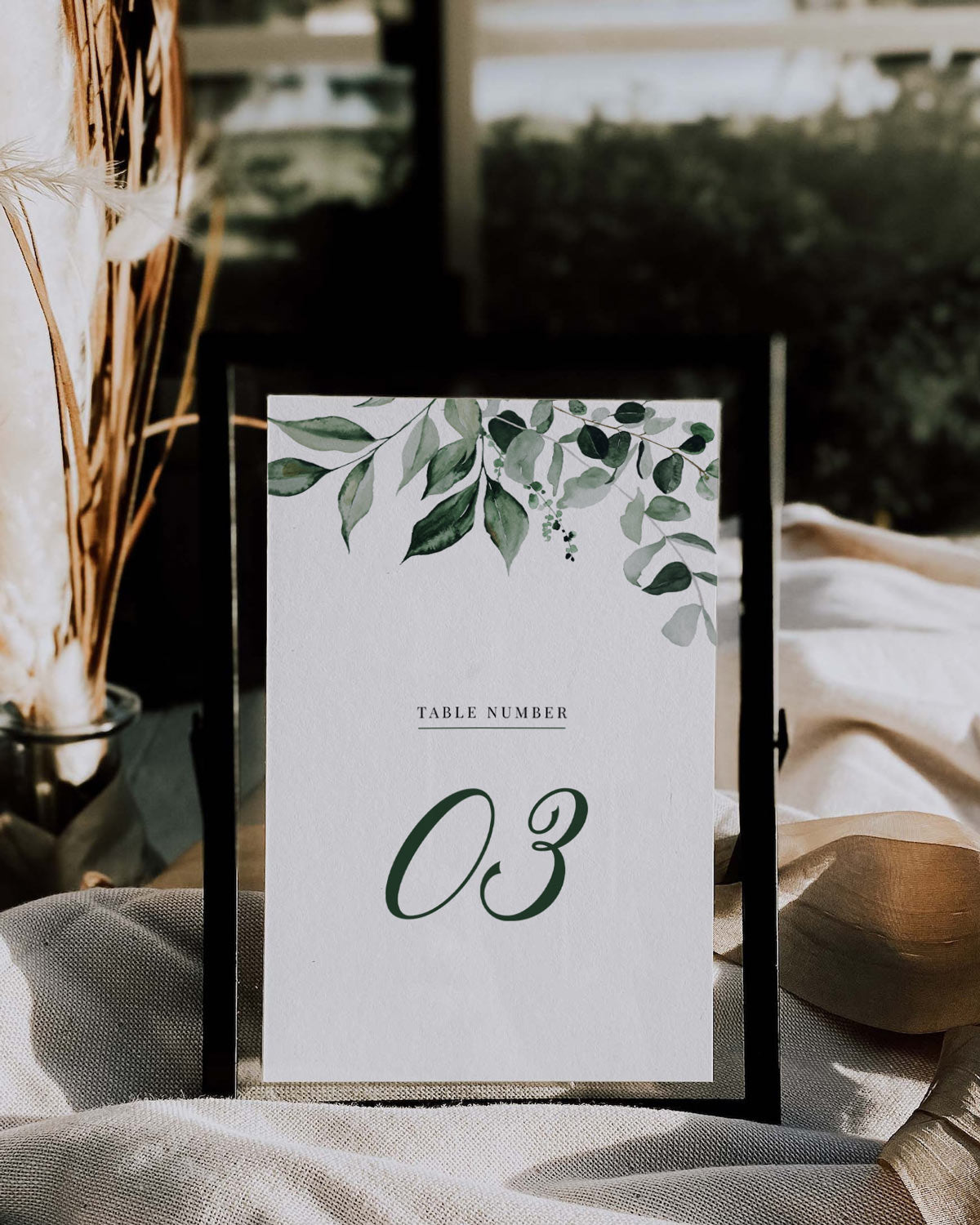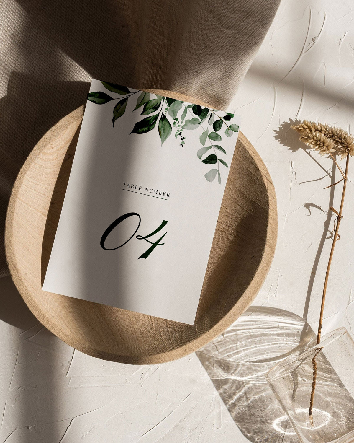 The Evergreen Table Numbers Wedding Template embraces a botanical design and classic typography. Combining and adapting minimalist typography and monograms, it's inspired by the modern-day bride.