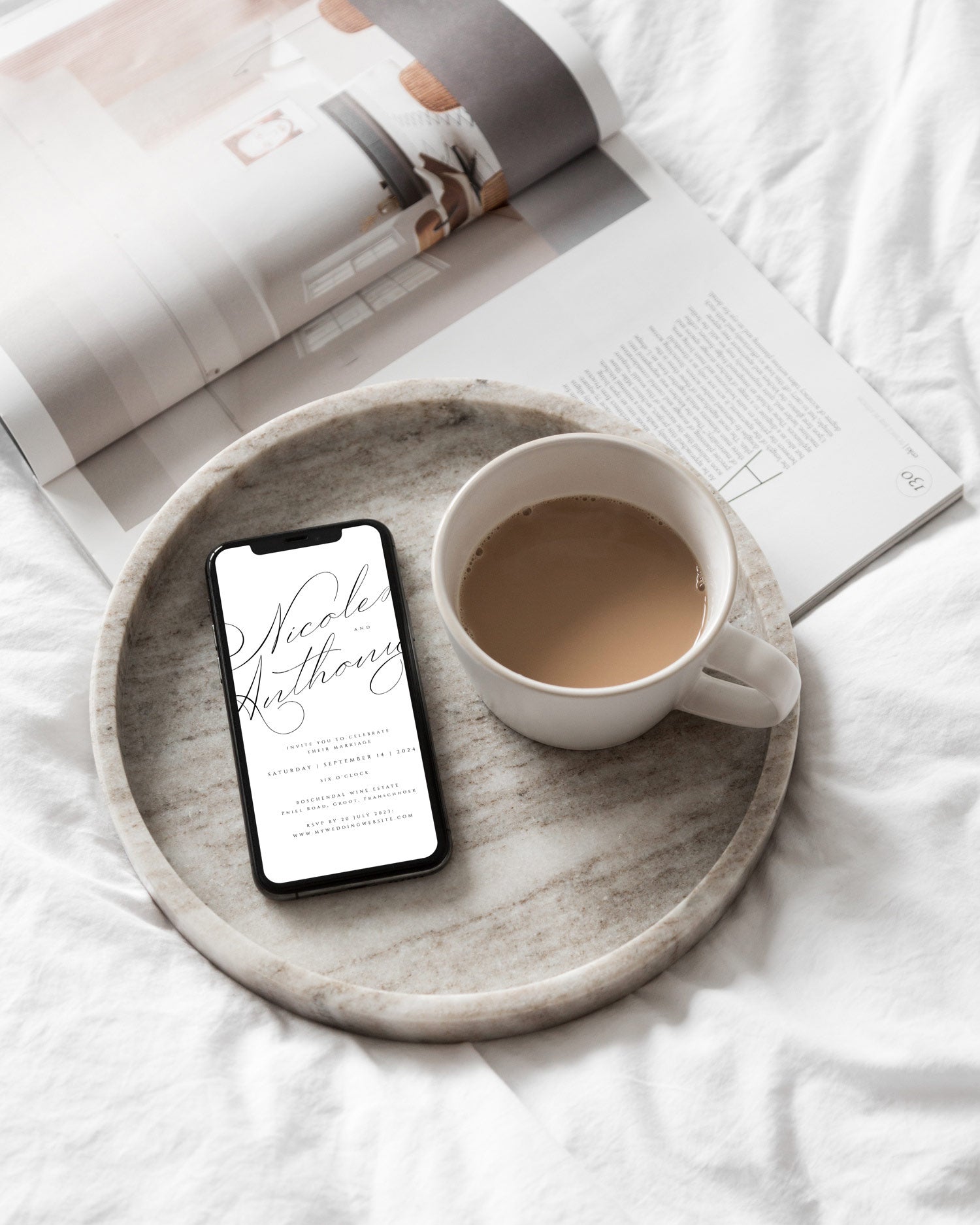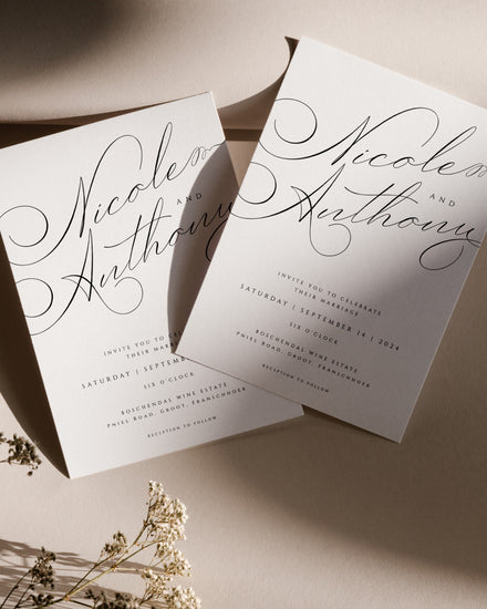 Using your laptop, personalise your stationery in Templett, a simple and easy-to-use platform. Save your files, download them, and send them to your guests, or print them professionally.