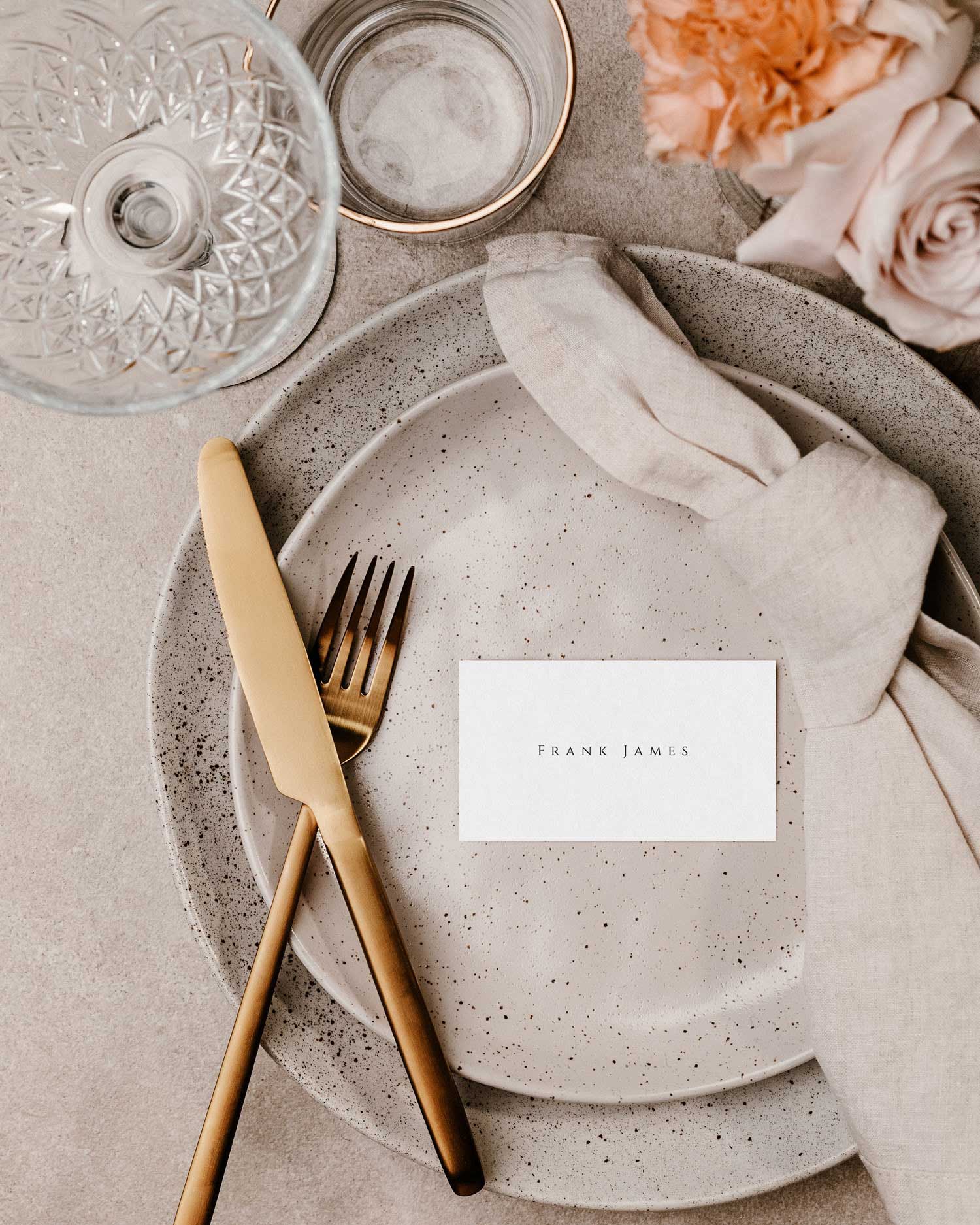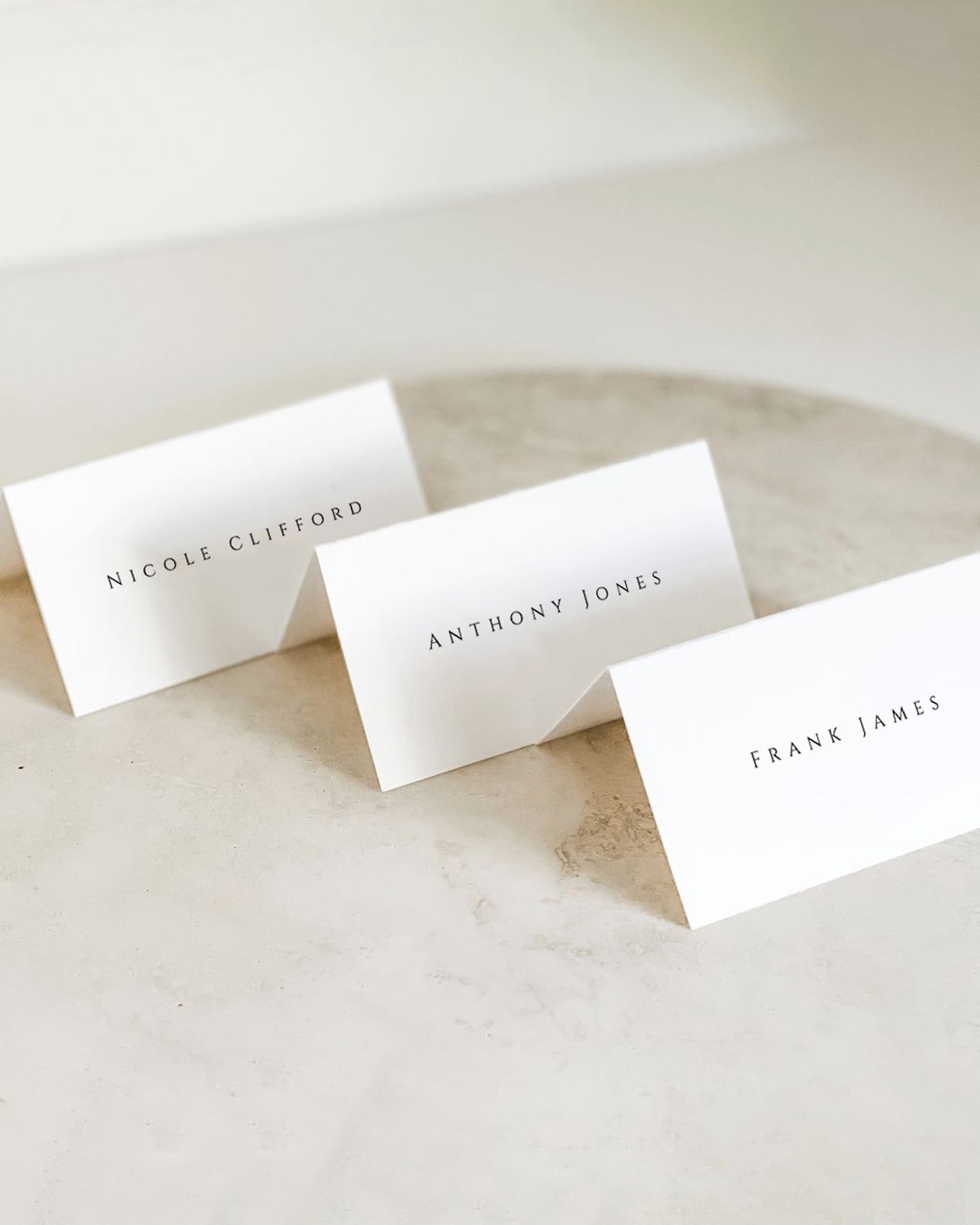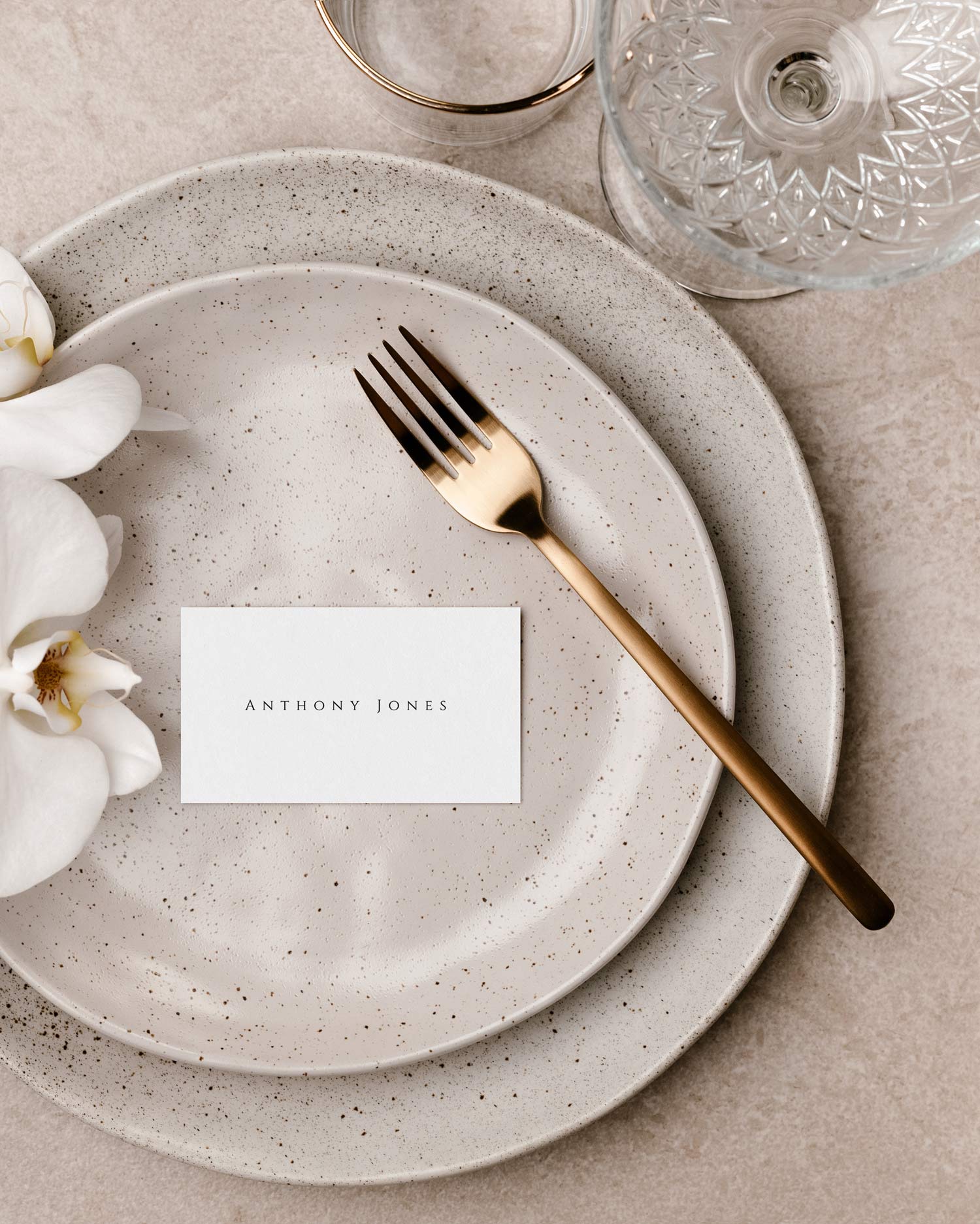 The Lile Name Card Set embraces intricate filigree elements and classic calligraphy. Combining and adapting minimalist and modern typography, it's inspired by the modern-day bride.